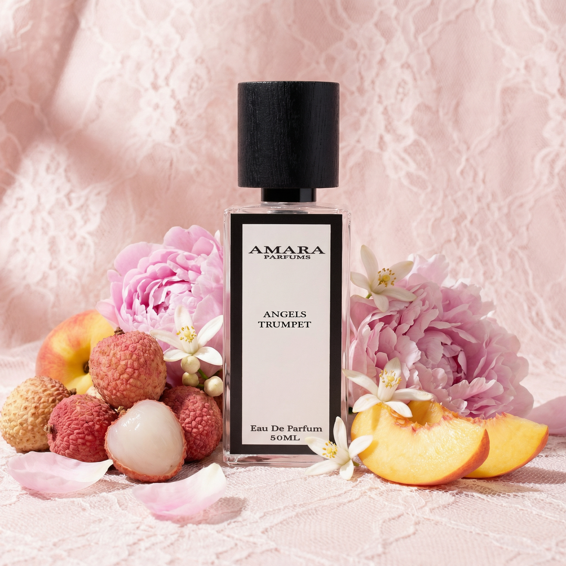 Angels Trumpet is a modern, addictive floral that feels both delicate and intoxicating. It opens with sparkling bergamot layered with juicy lychee and peach, creating a bright, softly sweet introduction. The heart blooms with peony, orange blossom, and jasmine - elegant, airy, and refined. As the fragrance settles, musk, moss, and subtle woody notes form a clean, sensual base that lingers beautifully on the skin. Fresh yet captivating, Angels Trumpet is femininity expressed with confidence and restraint.