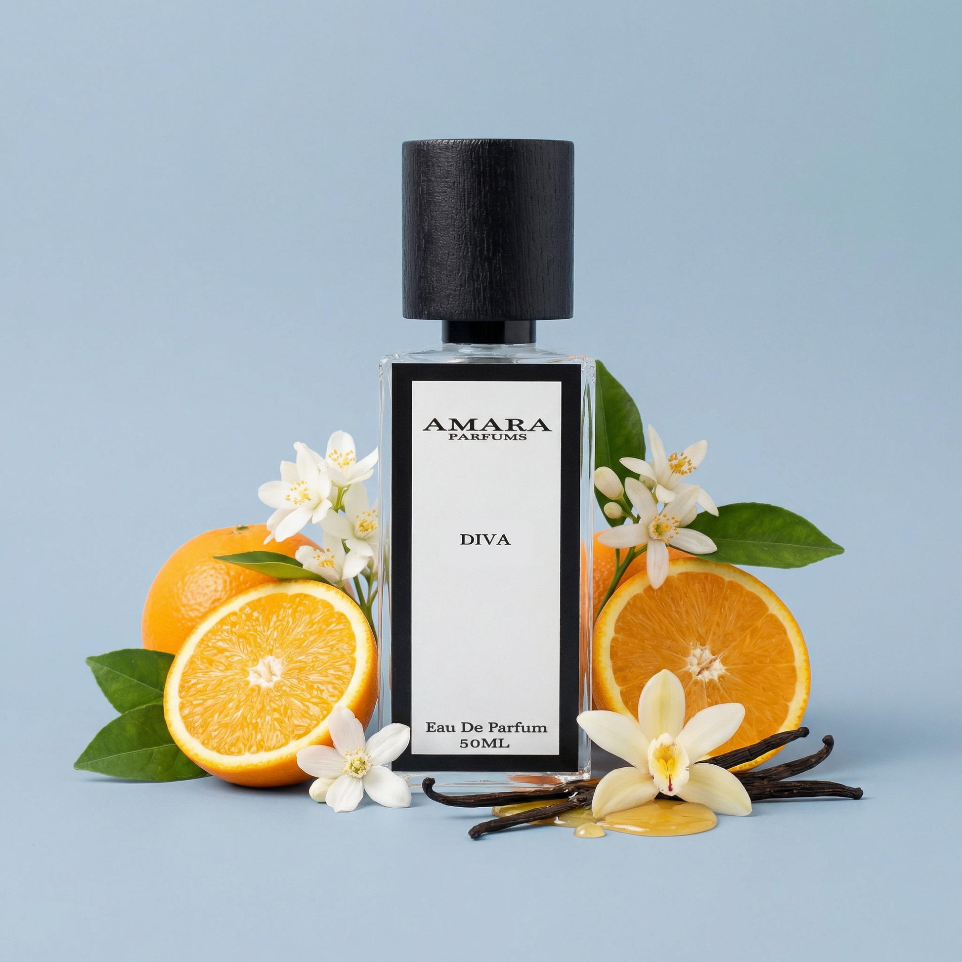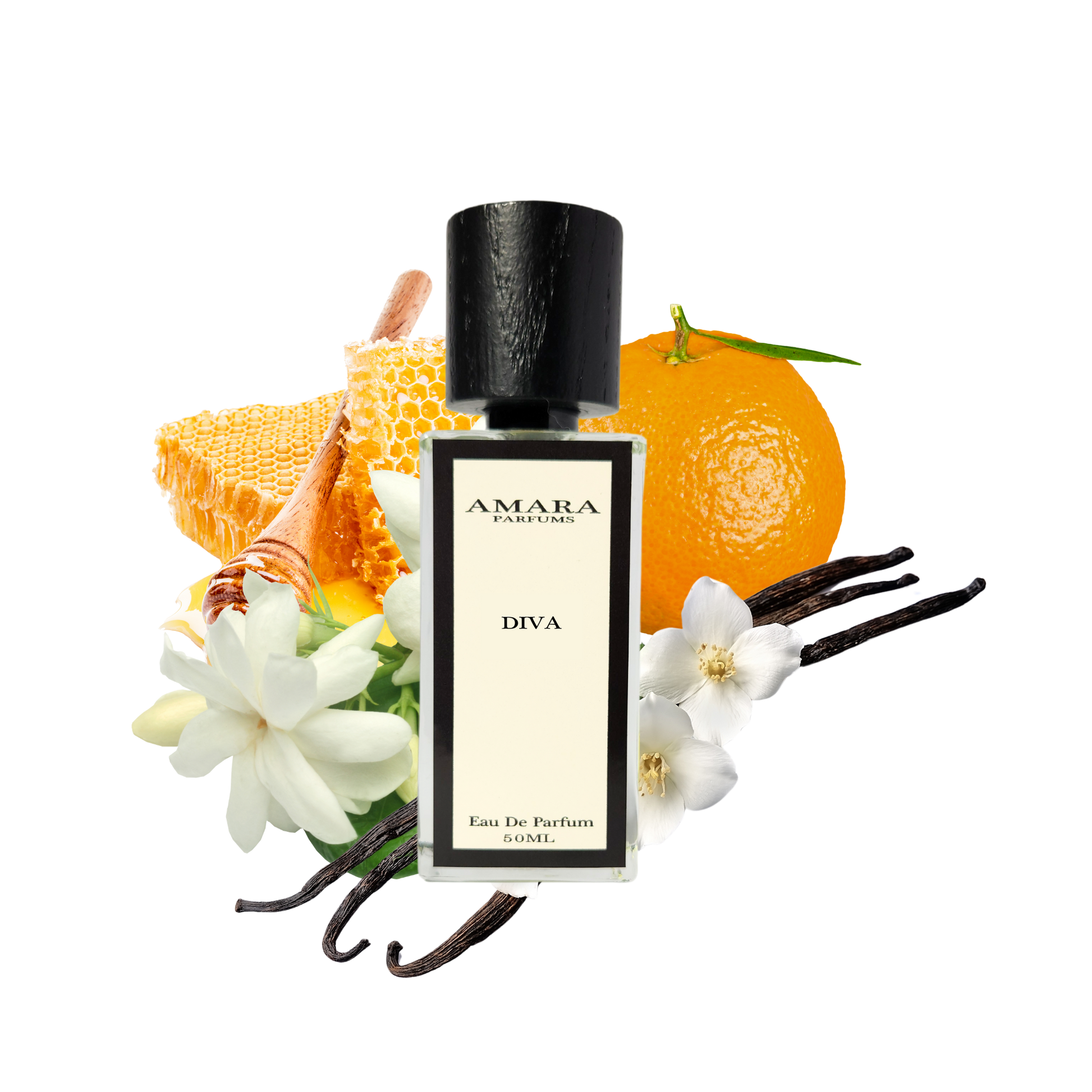 Diva is elegant, seductive, and effortlessly powerful, a fragrance that celebrates femininity with depth and warmth. It opens with bitter orange and sweet orange layered with jasmine, creating a luminous citrus-floral introduction. The heart blooms with orange blossom, jasmine sambac, and a touch of ginger, adding sensual richness and gentle spice. As it settles, honey, vanilla, and sandalwood form a creamy, enveloping base that lingers beautifully on the skin. Sophisticated and alluring, Diva is timeless glamour with a modern edge.